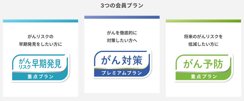 4つの製品ラインナップを組み合わせ、がんの遺伝的なリスクの把握から予防習慣のモニタリング、がんリスクの早期発見まで、あなたの課題に応じた適切な3つのプランを提供します。