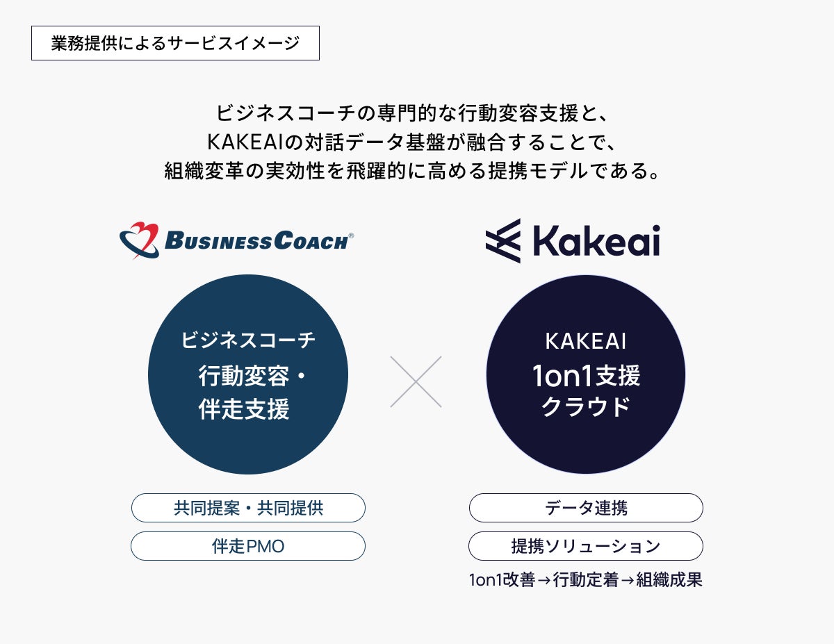 従業員マネジメント業務のテクノロジーによる進化を支援する株式会社KAKEAI(本社:東京都渋谷区、代表取締役社長:皆川 恵美、以下「当社」)は、ビジネスコーチ株式会社(本社:東京都港区、代表取締役社長:細川 馨、東証グロース:9562、以下「ビジネスコーチ社」)と、人的資本経営の実効性向上を目的とした業務提携契約を締結しましたので、下記の通りお知らせいたします。