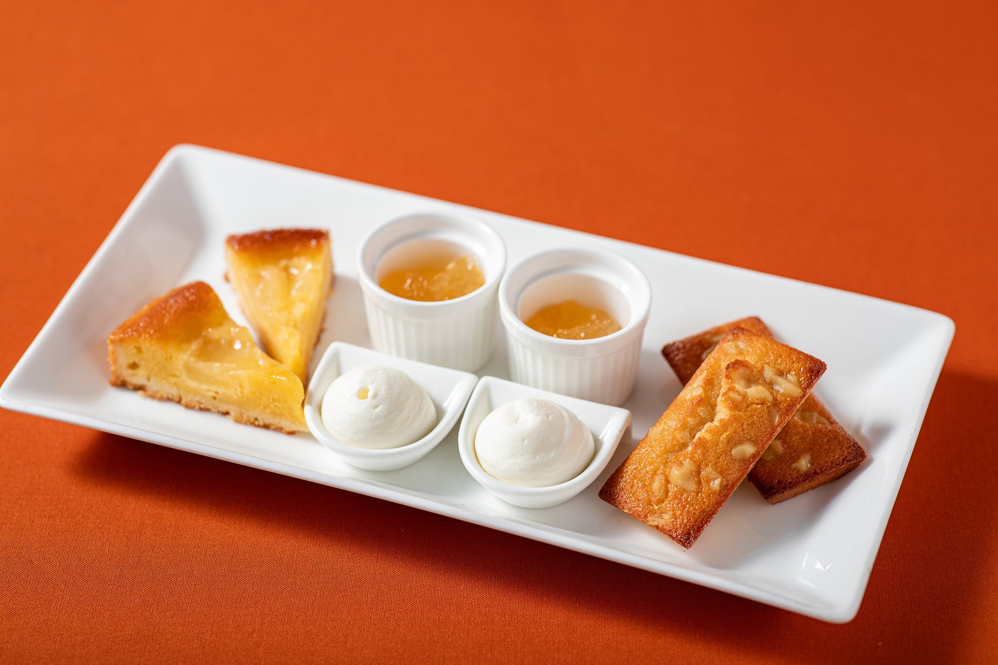 紅玉りんごのタルト、くるみとメープルシュガーのフィナンシェ、りんごのジャム、マスカルポーネクリーム
