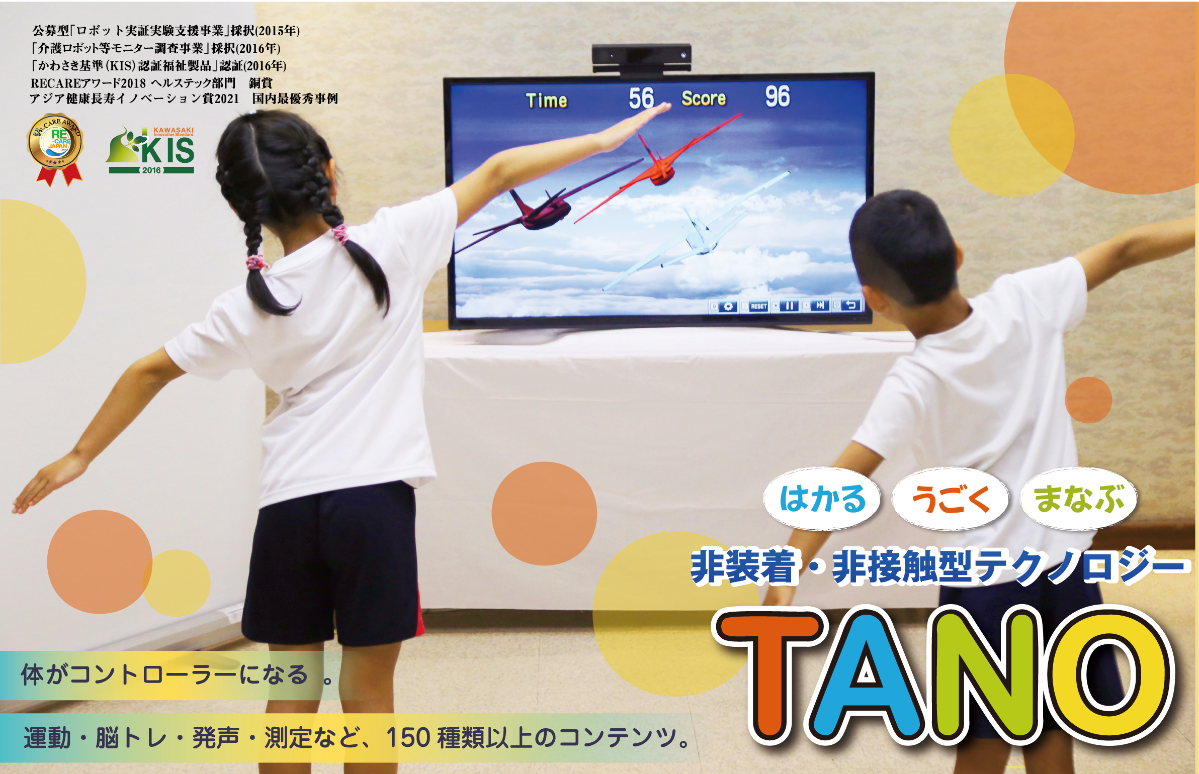 出展ブースでは、発達支援やリハビリ分野で注目を集めるTANOTECH開発の「TANO」を使用。非装着・非接触で体の動きをセンサーが読み取り、全身を使って楽しくプレイできる体験を通して、身体能力や集中力、バランス感覚を育むことを目指しています。