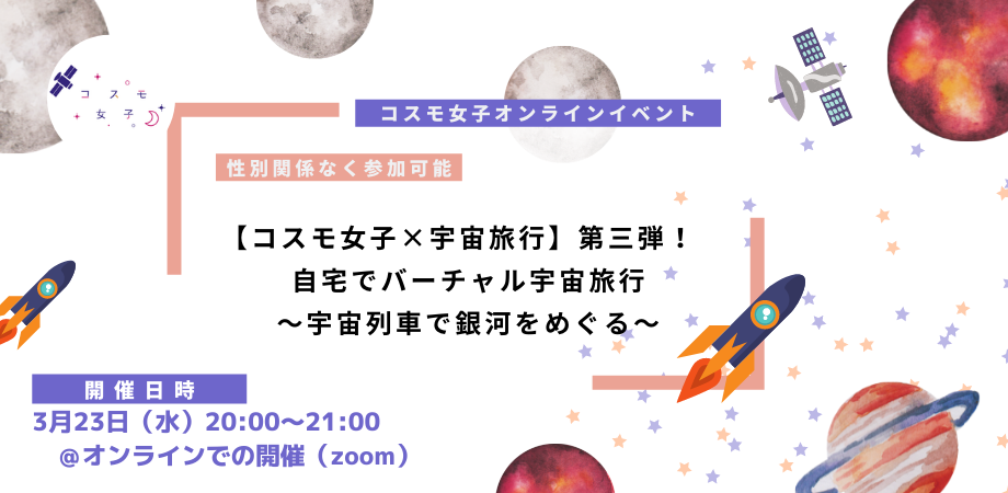 株式会社 Kanatta(東京都目黒区、代表取締役社長:井口恵)が運営する「コスモ女子」は、3月23日(水)にNHK「ひるまえほっと」様などにも取材いただきました「バーチャル宇宙旅行」について、第三弾を開催いたします。