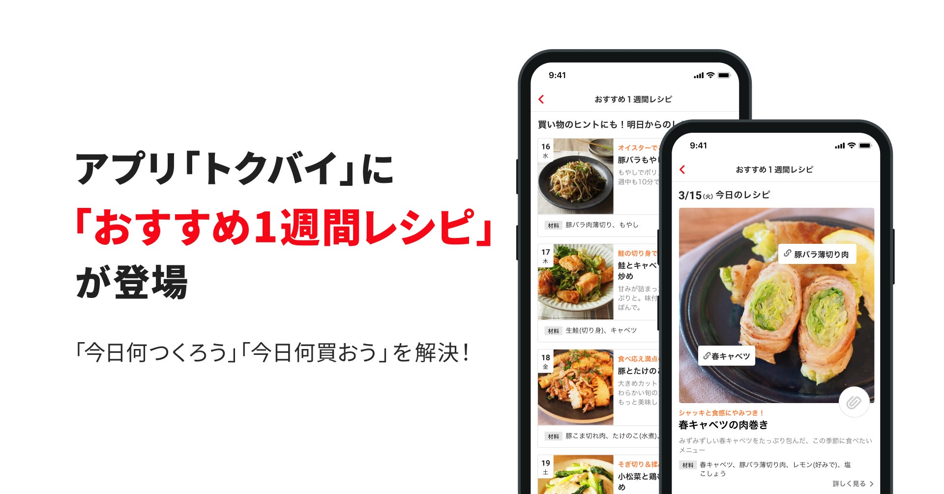 【トクバイが変わる!第二弾】「おすすめ1週間レシピ」が登場!