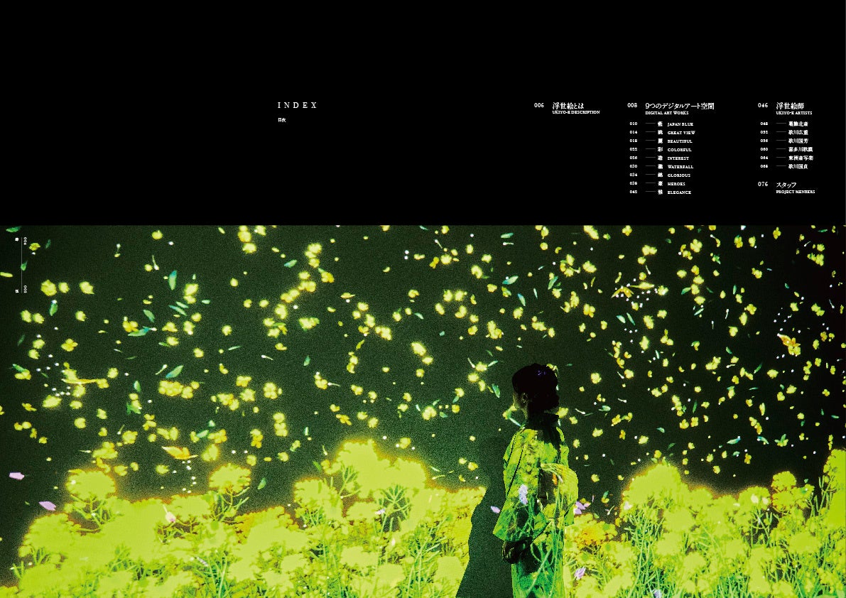 葛飾北斎、歌川国芳、歌川広重、喜多川歌麿、東洲斎写楽、歌川国貞など世界を魅了した浮世絵師の傑作300作品以上がダイナミックに躍動する期間限定のイマーシブ(没入型)展覧会の模様や浮世絵師の解説を収録。
