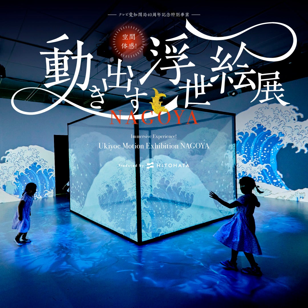 この催しは、テレビ愛知開局40周年記念特別事業として開催するもので、葛飾北斎、歌川国芳、歌川広重、喜多川歌麿、東洲斎写楽、歌川国貞など世界的な浮世絵師の作品300点以上をもとに、3DCGアニメーションやプロジェクションマッピングを駆使して大人から子どもまで楽しめるグラフィカルなデジタルアート作品として描き、9つの立体映像空間で浮世絵の世界に没入できる体感型デジタルアートミュージアムです。