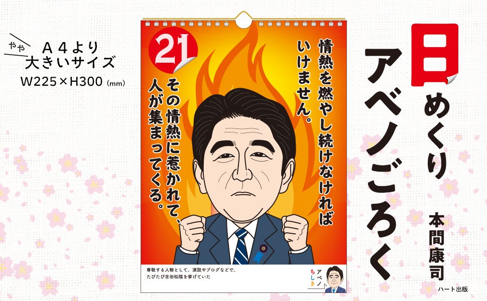安倍元総理が日々のニュースや新聞、時にはバラエティ番組などで語ったあの言葉や、記者会見で心に残ったメッセージを、ハート出版が31日の壁掛け日めくりカレンダーにした。