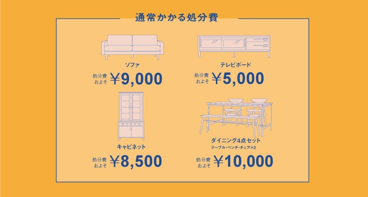 期間中 家具総額10万円以上(税込)をお買い上げで、ご自宅にある同等品を無料で回収いたします。