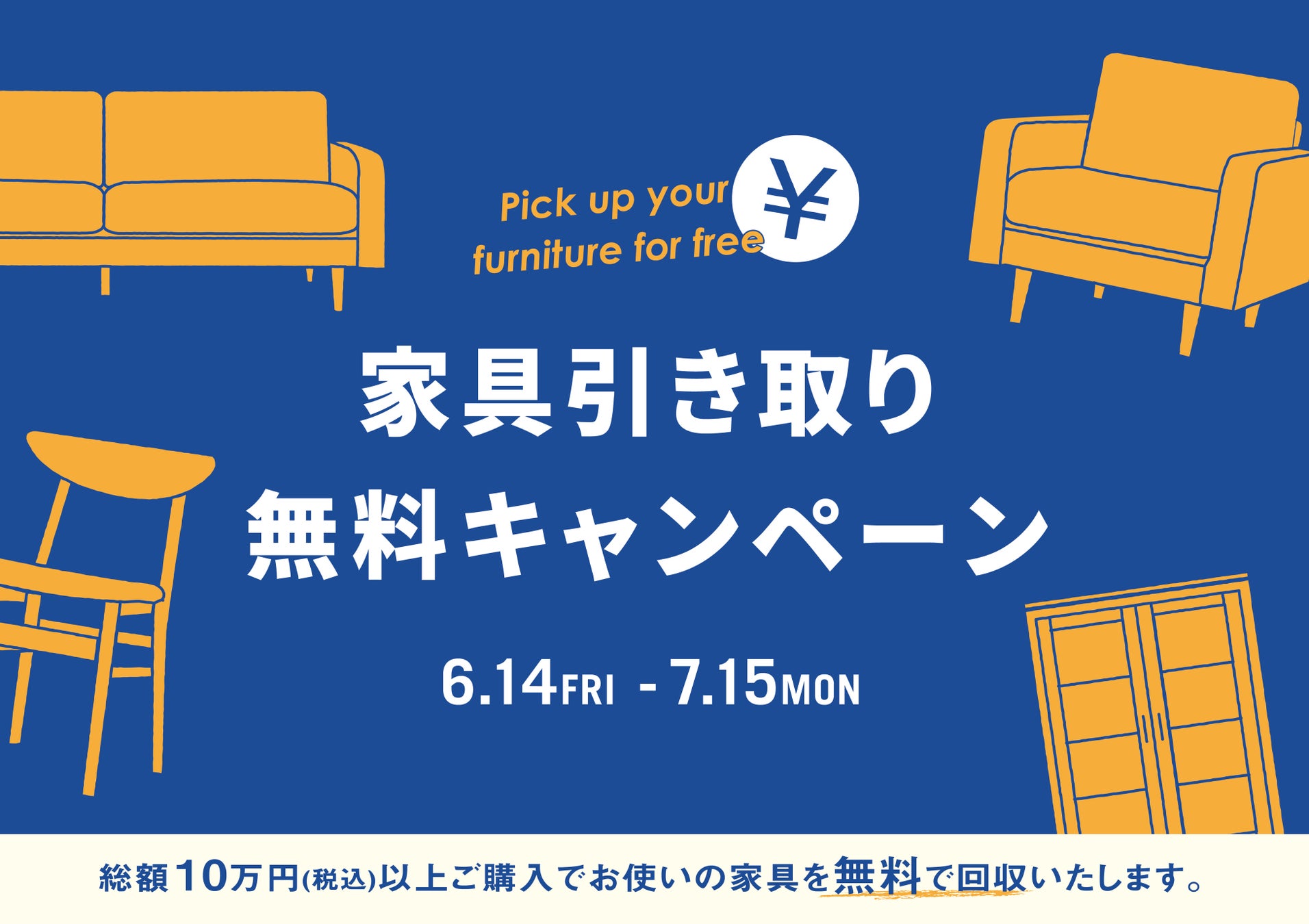 クラッシュゲートにて、家具引き取り無料キャンペーン、6/14(金)よりスタート!