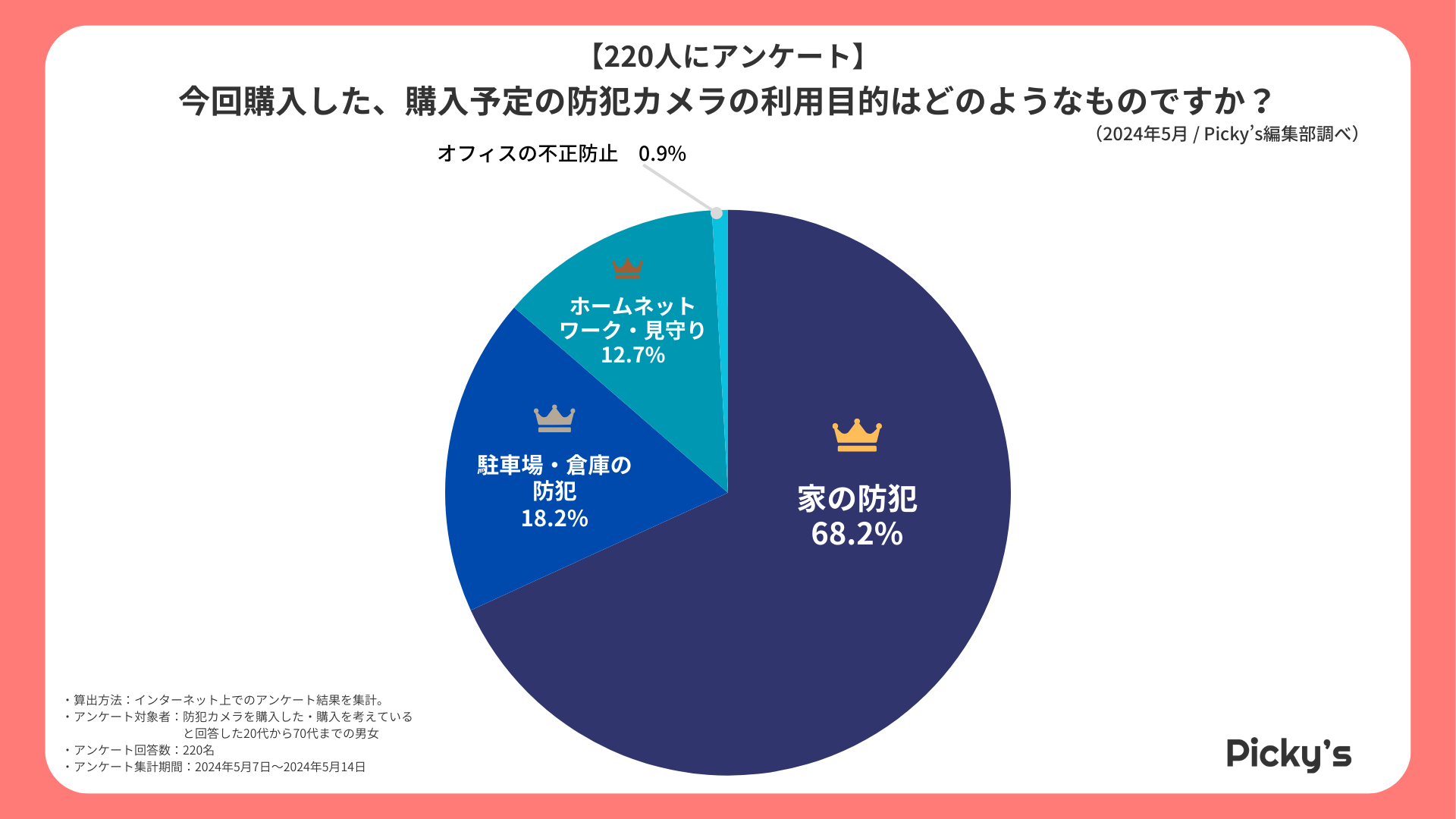 「Picky’s」は、インターネットショッピングにおいて、購入前に試せない・選ぶべきものがわからないという課題の解決を目標に、あらゆる商品のおすすめランキングや検証レビューを紹介するサイトです。このたびPicky’s(https://rentry.jp/)では、防犯カメラについてインターネット上でアンケート調査を行いましたので発表いたします。