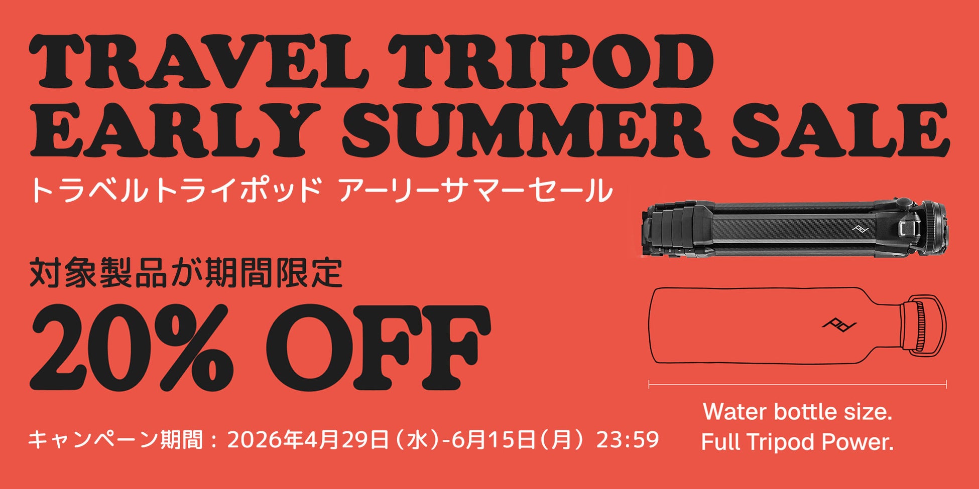この度、2026年4月29日(水)〜6月15日(月)までの間、この「トラベルトライポッド(カーボン/アルミ)」を“20%OFF”の特別価格でご提供する、期間限定セール「TRAVEL TRIPOD EARLY SUMMER SALE」を開催いたします。