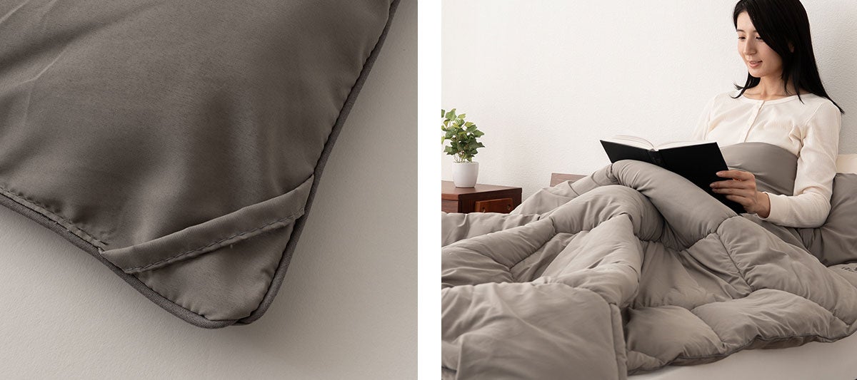 熱伝導率が高いグラフェンは、短時間で温まるのが特長。そのため、「布団に入っても冷たくてなかなか寝付けない」という方にもぴったりの素材です。
