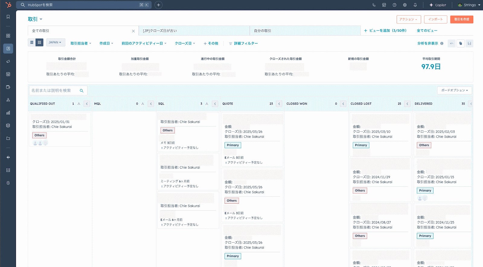 特に日本市場では、複数の代理店が同一顧客に対して見積もりを提出するケースも多く、案件情報が重複する傾向があります。これに対応するためのタグ分類ルールを導入し、案件ごとの位置づけを明確に管理。パイプラインの整合性を保つとともに、本社と日本支社の間で数値認識を一致させることが可能になりました。