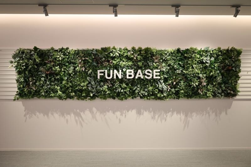 会議室の名称は、社員参加型のワークショップにより決定いたしました。そのほか、展示スペースも設けており、現在は新本社ビルのコンセプトである「FUN BASE」をテーマにしたグリーンアートを展示しております。