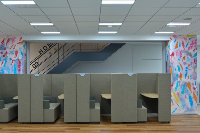また、天王洲エリアがアートの街として知られていることもあり、各フロアの柱の一部に、福祉施設所属アーティストの方の作品を採用いたしました。社内でグループ社員参画型のワークショップを実施し、これから自分たちがなりたい姿のキーワードに沿ったアートを選定しております。