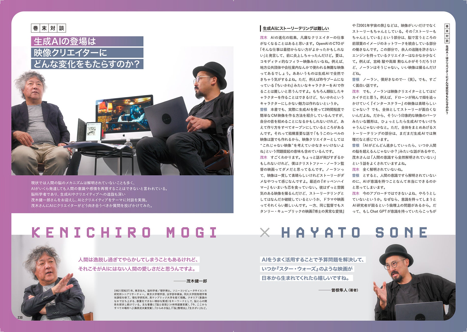 ▲クリエイティブにも造詣の深い、脳科学者の茂木健一郎さんをお招きした著者との対談を収録。テーマは「生成AIの登場は映像クリエイターにどんな変化をもらたすのか?」