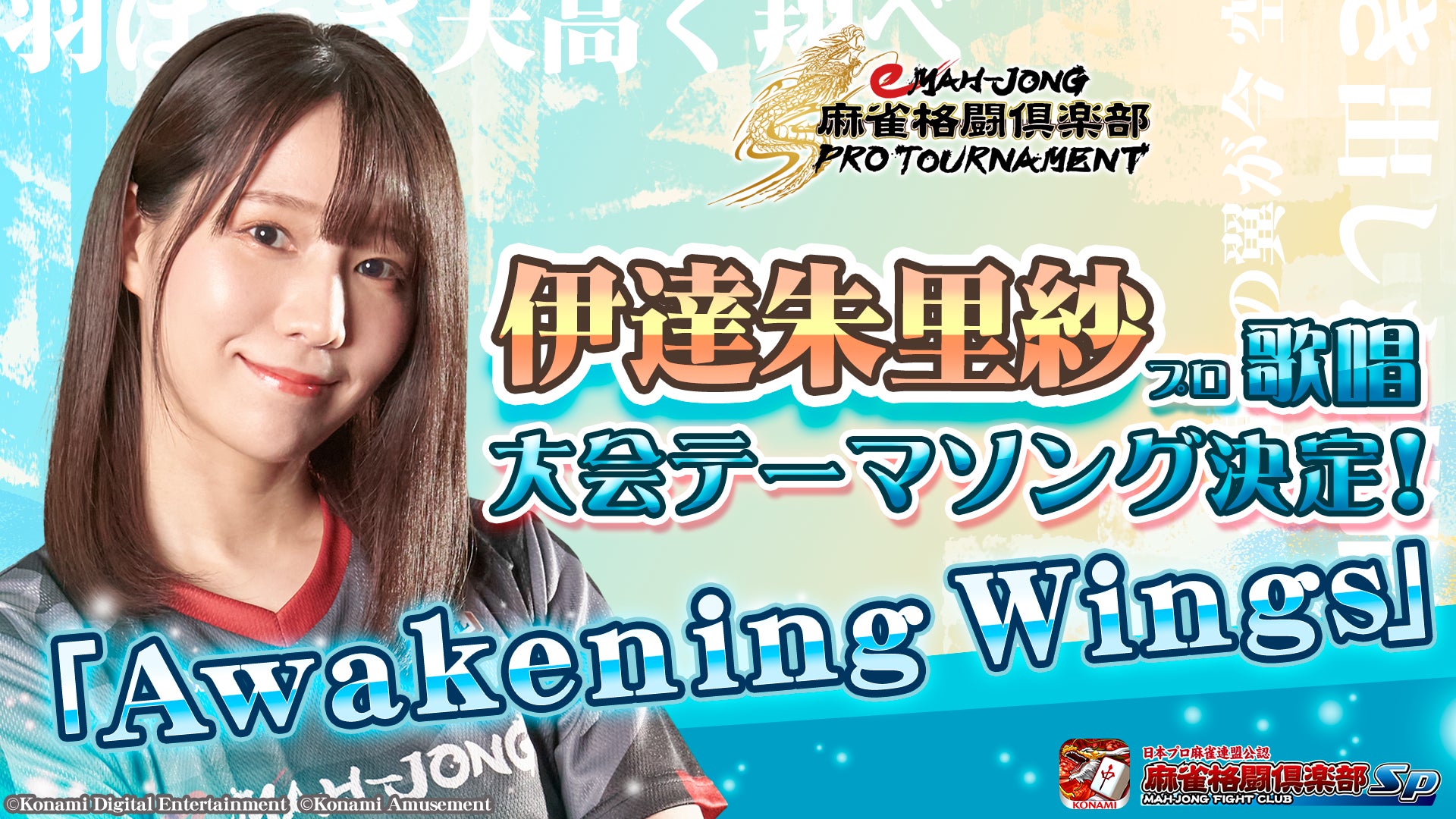 また、大会テーマ曲「Awakening Wings(アウェークニングウィングス)」は、数多くのアニメで声優として活動しながら、2021-2022シーズンでMリーグ史上最高得点を獲得した、Mリーグチーム 「KONAMI麻雀格闘倶楽部」に所属しているプロ雀士の伊達 朱里紗さんが歌唱を担当します※4。