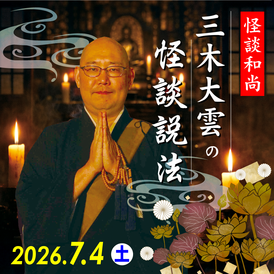 怪談説法で人気を集める僧侶・三木大雲による特別イベントを開催する。