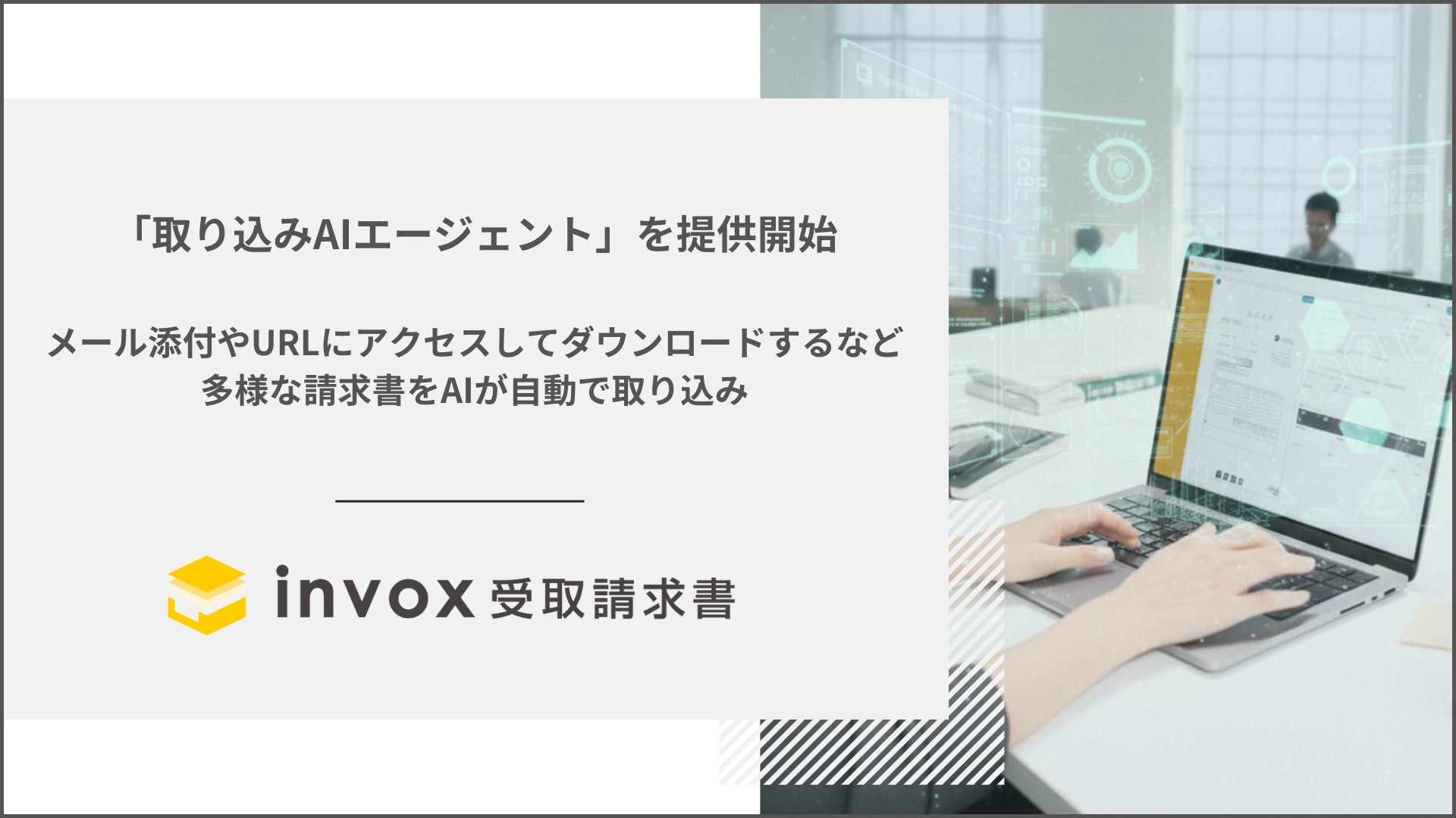 株式会社invox(本社:東京都新宿区、代表取締役:横井 朗)が開発・運営する「invox受取請求書」において、さまざまな形式で送られてくる請求書をAIが自動でinvoxに取り込む新機能「取り込みAIエージェント」を提供開始しました。