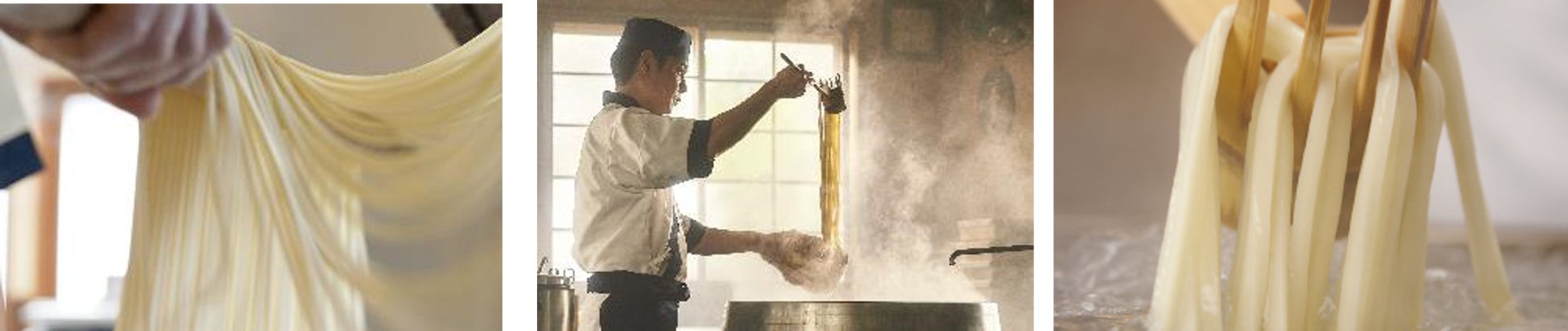 「ここのうどんは、生きている」をブランドメッセージに掲げ、日々、食の感動体験を追求し手づくりの「おいしいうどん」をお客さまに提供しています。徹底的に鮮度にこだわり、国内800を超えるすべての店で、一軒一軒、職人が手間を惜しまず「おいしさ」を日々つくり続けています。