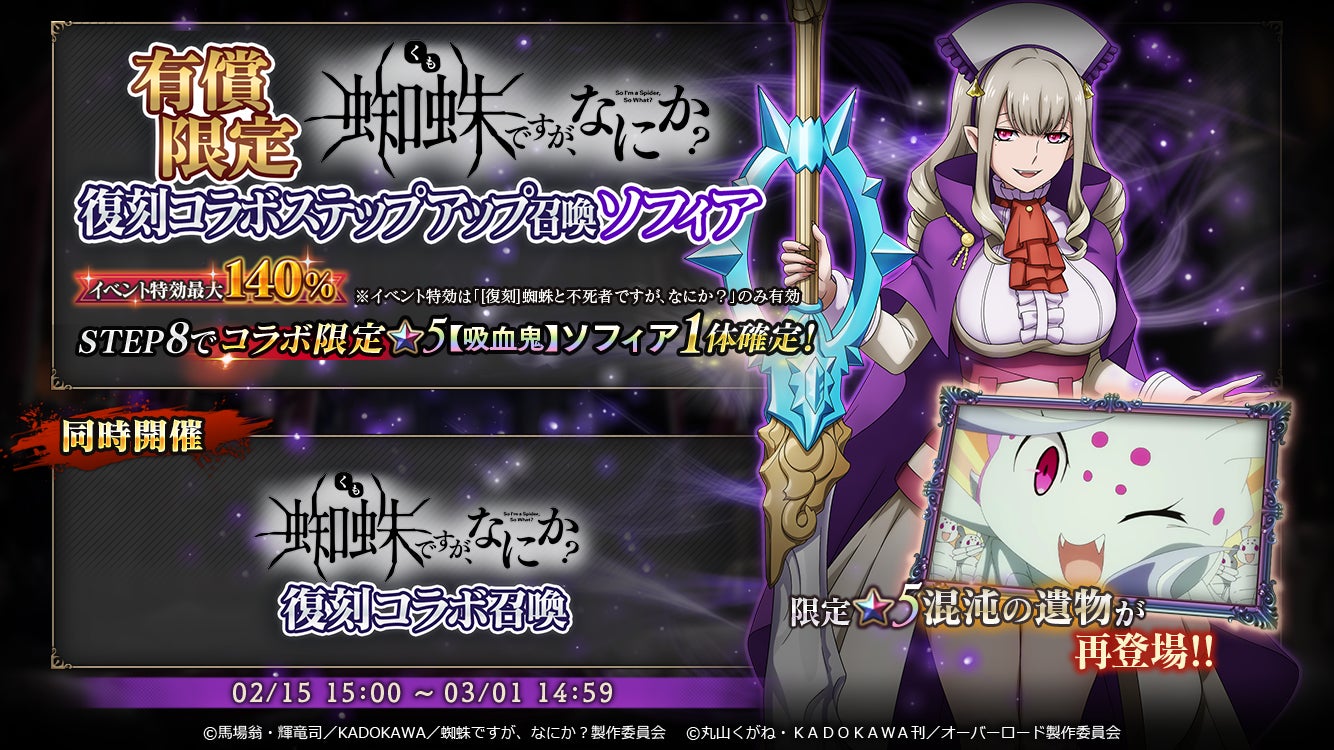 ■コラボイベント召喚『有償限定 蜘蛛ですが、なにか?復刻コラボステップアップ召喚』開催!