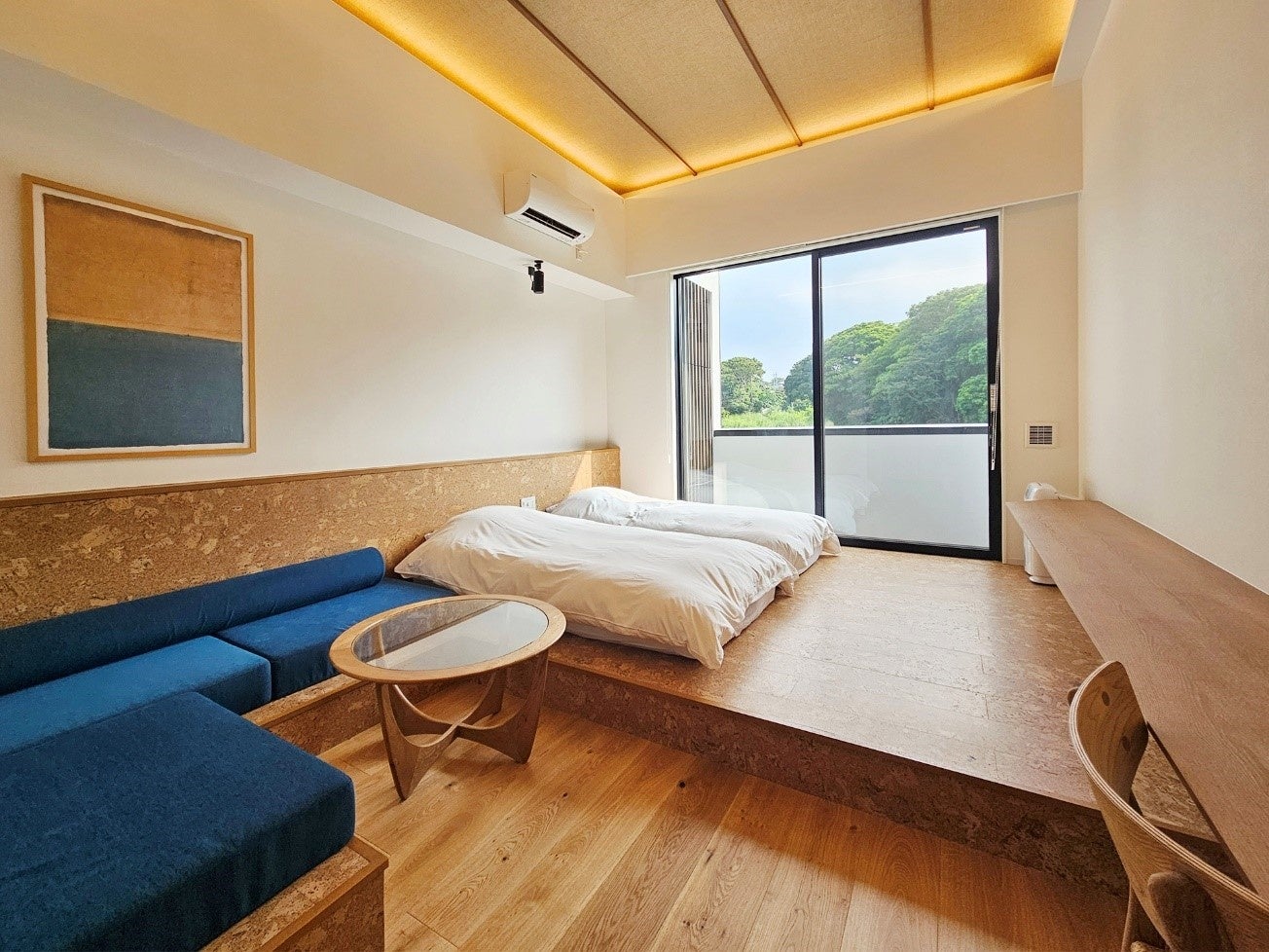 新棟はツインルーム12室、ファミリールーム2室の合計14室、全室タブレットを使った無人チェックインシステムを導入した完全無人施設となっております。ファミリールームの室内ではスマートスピーカーを取り入れ、照明や空調機器などを声で操作したり、ホテル内でのお困りごとを質問するとAIが答えるなど、奄美大島での滞在をスマートに満喫できる施設となっております。また今回、新棟に時間貸しで利用できるレンタルルームを新設し、旅の仲間とゆったりしたスペースでお食事やパーティを楽しむことも可能です。
