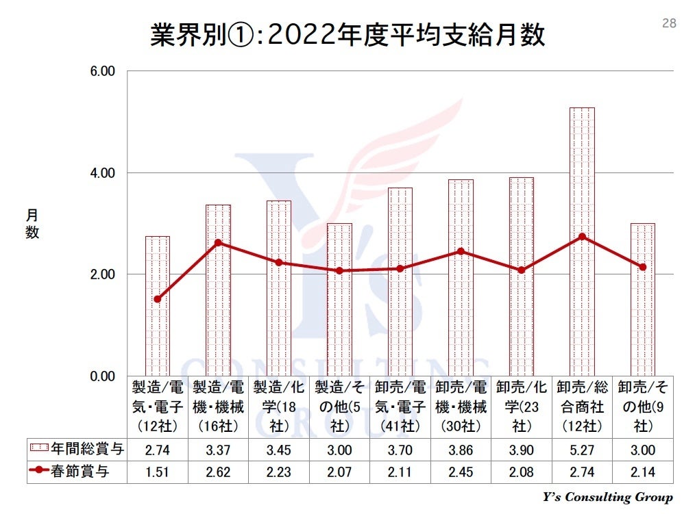 - 支給水準は総合商社がトップ、化学専門商社が2位