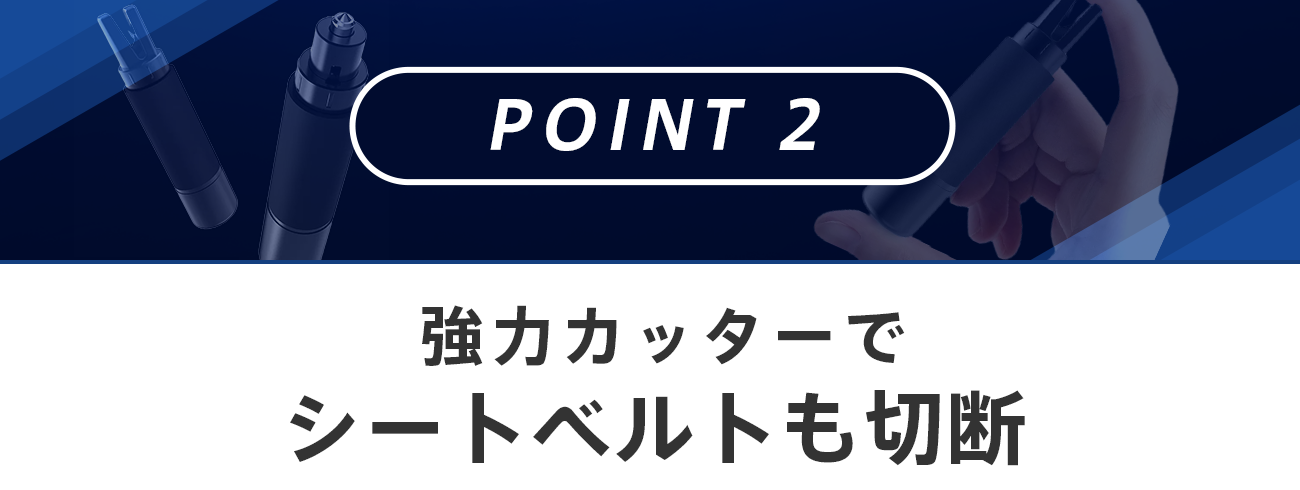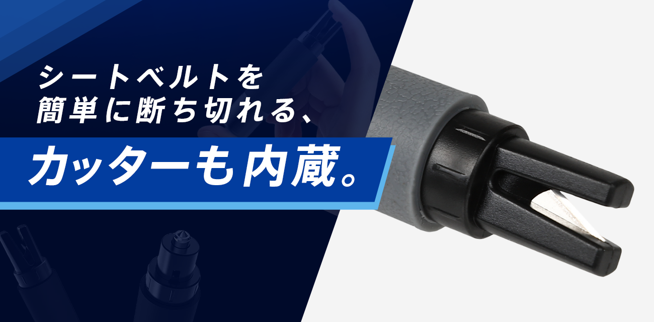 - カッターは溝の内側に刃を格納。シートベルトを安全に切断できる!