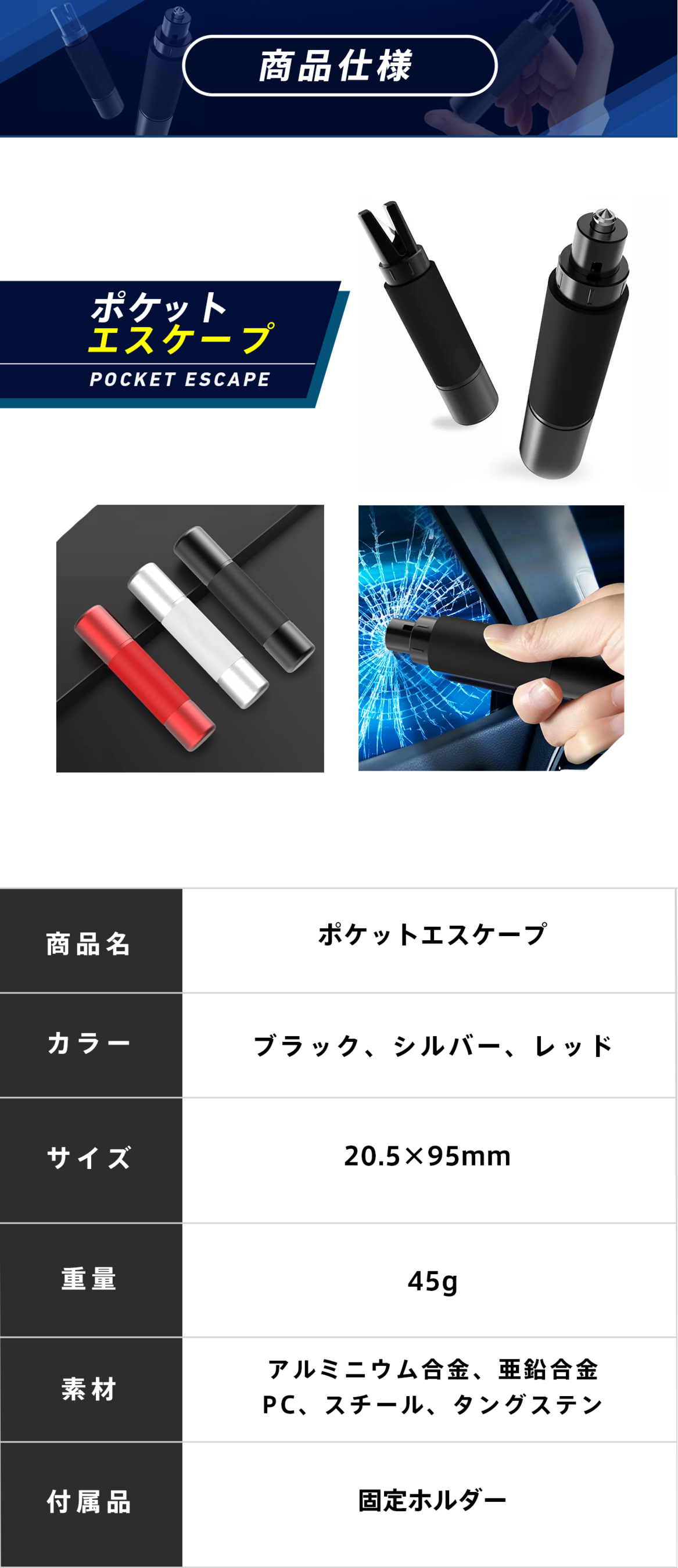 - 車の非常時にガラスを割れるハンマーとシートベルトカッターの2in1。ポケットサイズで携帯にも便利!