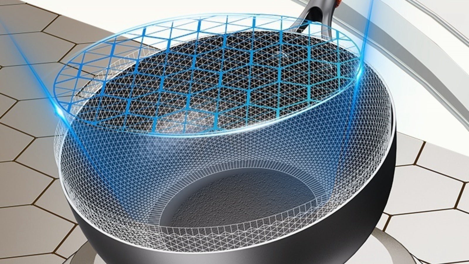 ✓空気層の形成:六角形の凹凸が食材と鍋の接触面積を最小化し、微細な空気層を作り出して、食材の密着を効果的に防止します。