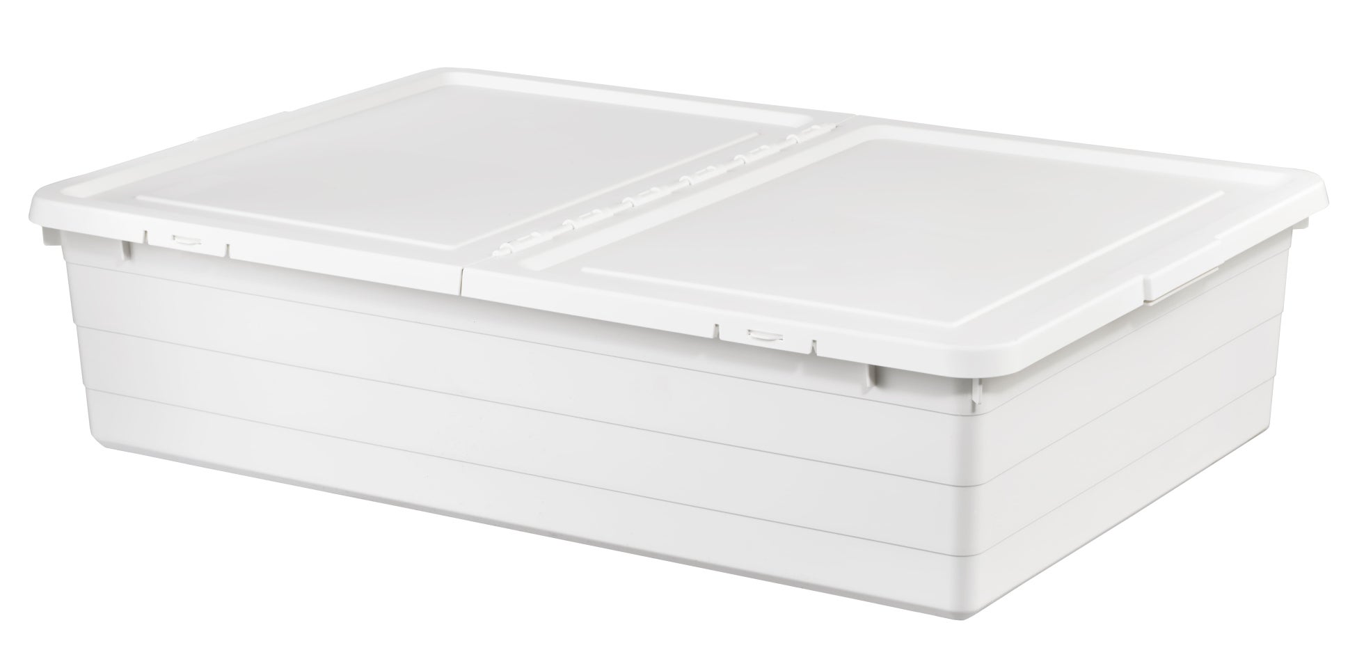 大きいサイズのものはベッド下にすっぽり収まるデザインで、ベッド下の空きスペースを存分に活かすことができ、収納スペースが少ない一人暮らしにぴったりです。蓋が半分ずつ開けることができるので、ベッドの前に十分なスペースがなくても、半分だけ引き出して中身を入れ替えることができます。収納物を書き込んだり、ラベルを貼ったりできる小さなスペースがあるのもイケアらしい小さな優しさです。