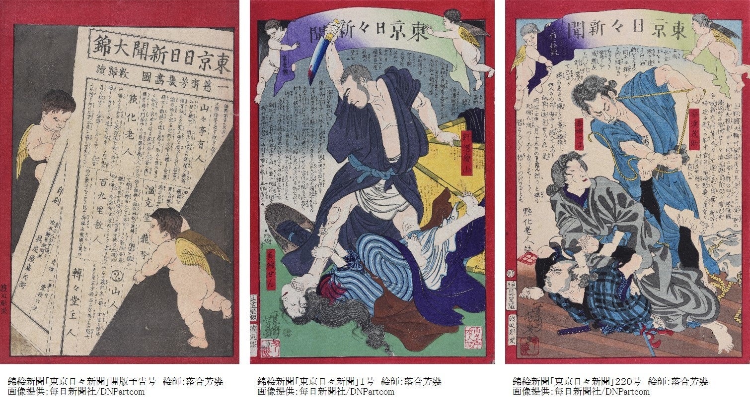 大日本印刷株式会社(DNP)の100%子会社で、美術関連のコンテンツビジネスを行う株式会社DNPアートコミュニケーションズは、国内外の多くの美術館・博物館等の所蔵作品の高精細なデジタル画像データの貸出サービスを行っています。その一環として、毎日新聞社の所蔵作品の画像データ貸出サービス「毎日新聞社イメージアーカイブ」を2022年4月11日(月)に開始しました。第一弾として、明治初期発行の「東京日日新聞」を題材にした錦絵新聞224点を公開します。