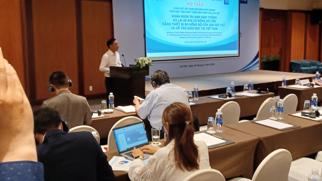 さて、本セミナーをもって、JICA採択事業「飲酒運転防⽌をメインとした事故防⽌⽀援(機器運⽤及び教育⽀援)案件化調査」が終了しました。 当社の本当の使命は、実証実験でもなくセミナーでもなく、ベトナムでの飲酒運転根絶、そのためのアルコール検知器の法制化の実現です。そのためには、継続的な活動が必要です。 そしてこの度当社は、2023年8⽉、「業務⽤アルコール検知器」の法制化や普及を本格的に⽬指すため、飲酒運転防⽌事業を⾏う現地法⼈を設⽴することを決めました。セミナー終了翌⽇から、設⽴⼿続きに⼊っております。 引き続き、ご⽀援、ご指導のほどよろしくお願い致します。