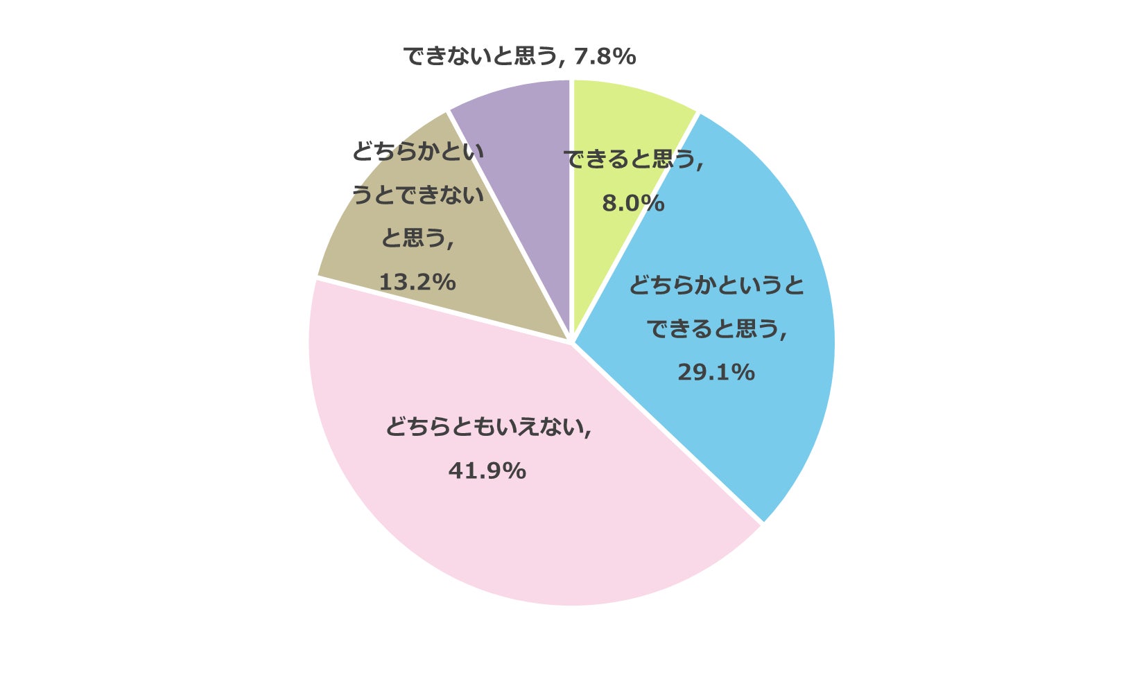 子どもから進路相談を受けた際、有益なアドバイスをできると思うか質問したところ、37.1%が「できると思う」(できると思う:8.0%、どちらかというとできると思う:29.1%)と回答しました。一方で、21.0%が「できないと思う」(できないと思う:7.8%、どちらかというとできないと思う:13.2%)と回答しました。