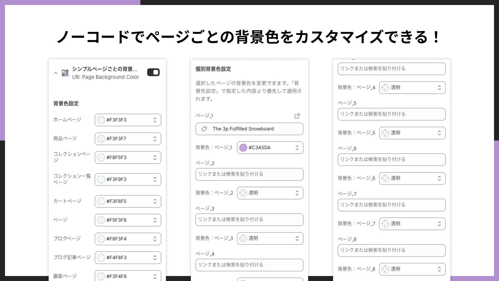 ■ノーコードでページごとの背景色をカスタマイズできる!