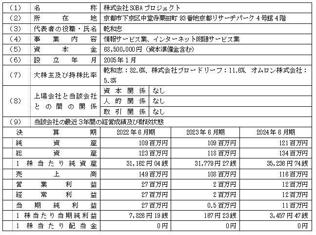 【4.株式会社SOBAプロジェクトの概要(2025年6月16日現在)】