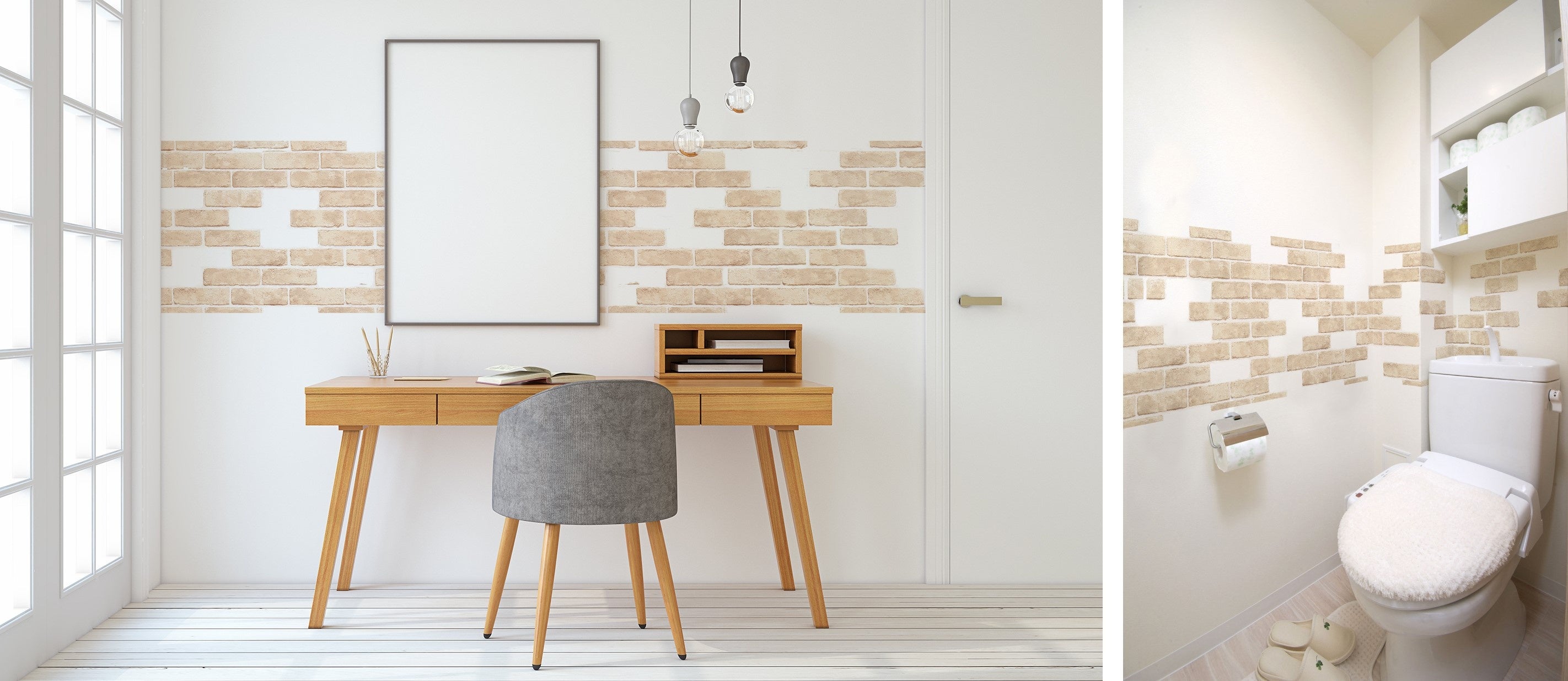 商品の一例:下地を生かした透けるレンガ調壁紙45㎝×250㎝ 1,890円(税込み)~