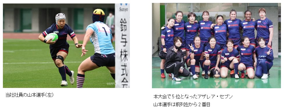 ラグビー大会に出場した袋井市を拠点とするアザレア・セブンには、当社社員である山本みなみ選手が所属。アザレア・セブンは5位となり上位大会への昇格は逃しましたが、山本選手は全試合で活躍し、5位決定戦では得意な低いタックルで相手チームの攻撃を抑えて逆転勝利に大きく貢献しました。