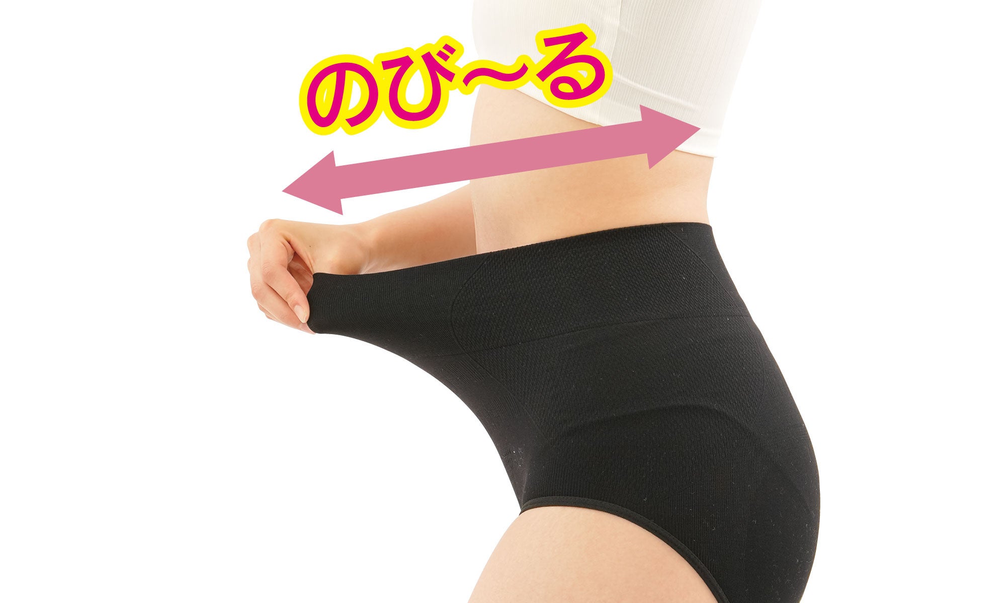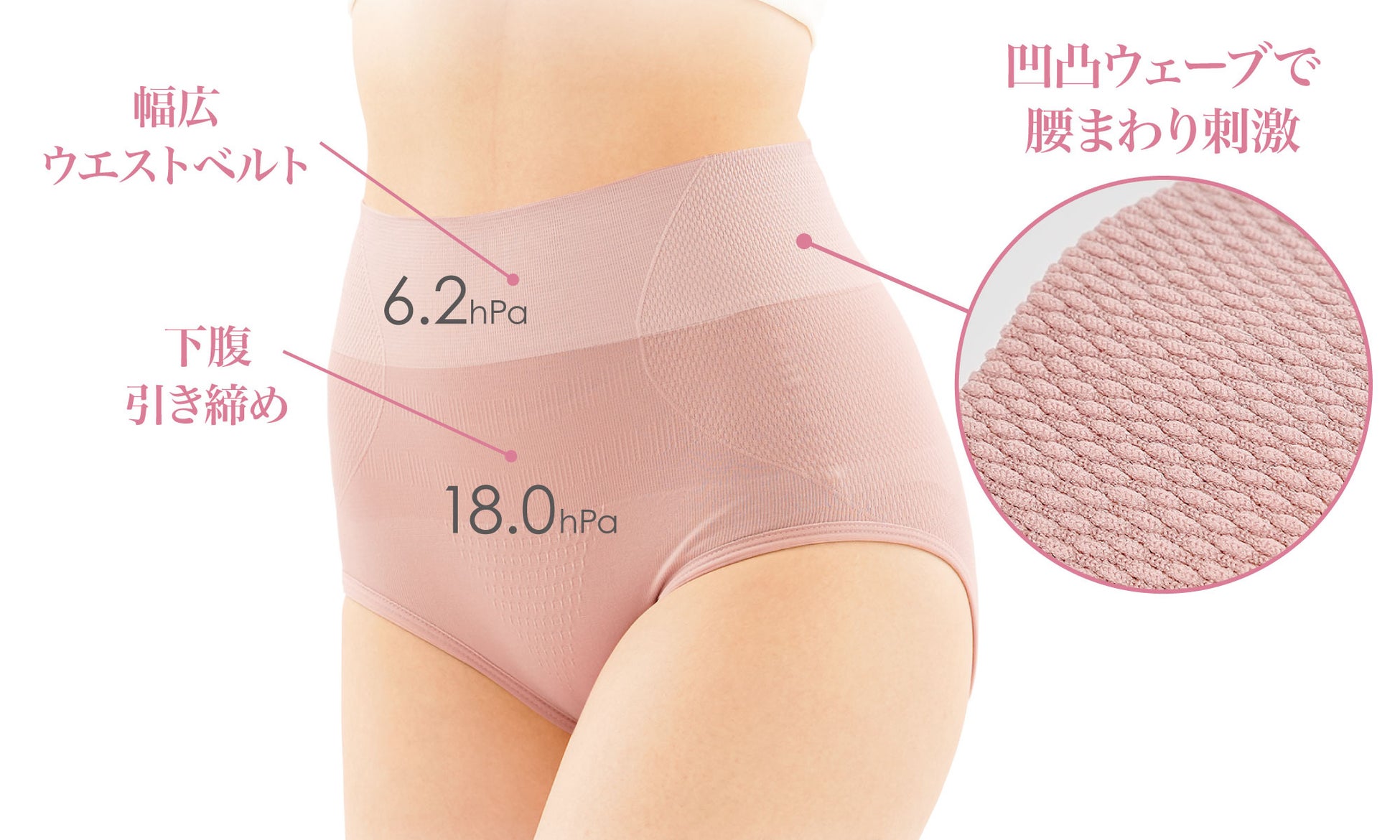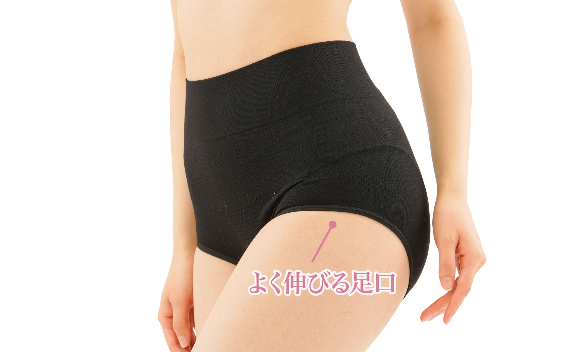 幅広ではみ肉が出にくく、なめらかなくびれラインをサポートします。
