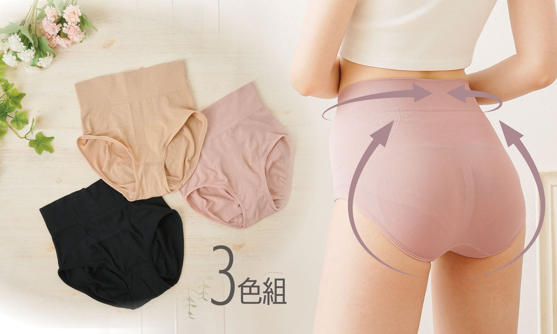 「ハイウエストヒップアップショーツ 3色組」