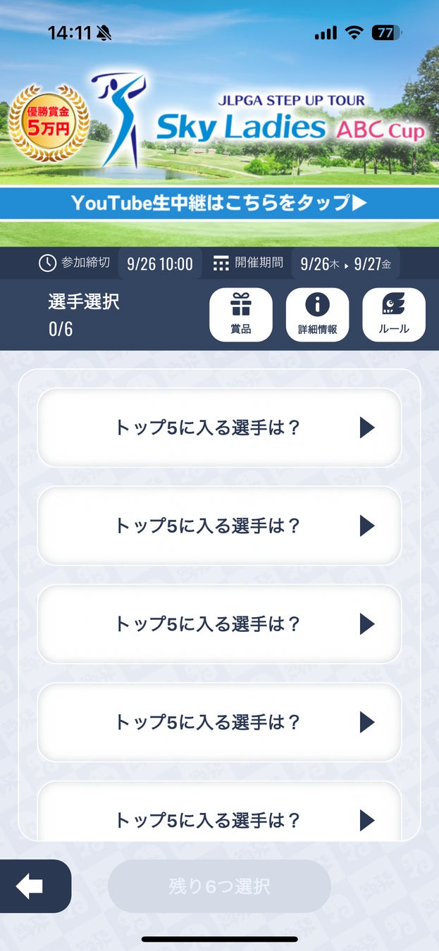 イノベーションの力で新たなスポーツ・エンターテインメントを創造し、まだ見ぬ感動と熱狂を提供するアプリ「なんドラ」を運営する株式会社なんでもドラフト(本社:東京渋谷区、代表:森井啓允)は、9月24日(火)〜27日(金)にABCゴルフ倶楽部(兵庫県加東市)で開催される、JLPGAステップ・アップ・ツアー Sky Ladies ABC cup のSky株式会社 公式チャンネルで配信される中継と連動したリアルタイム予想を開催します。