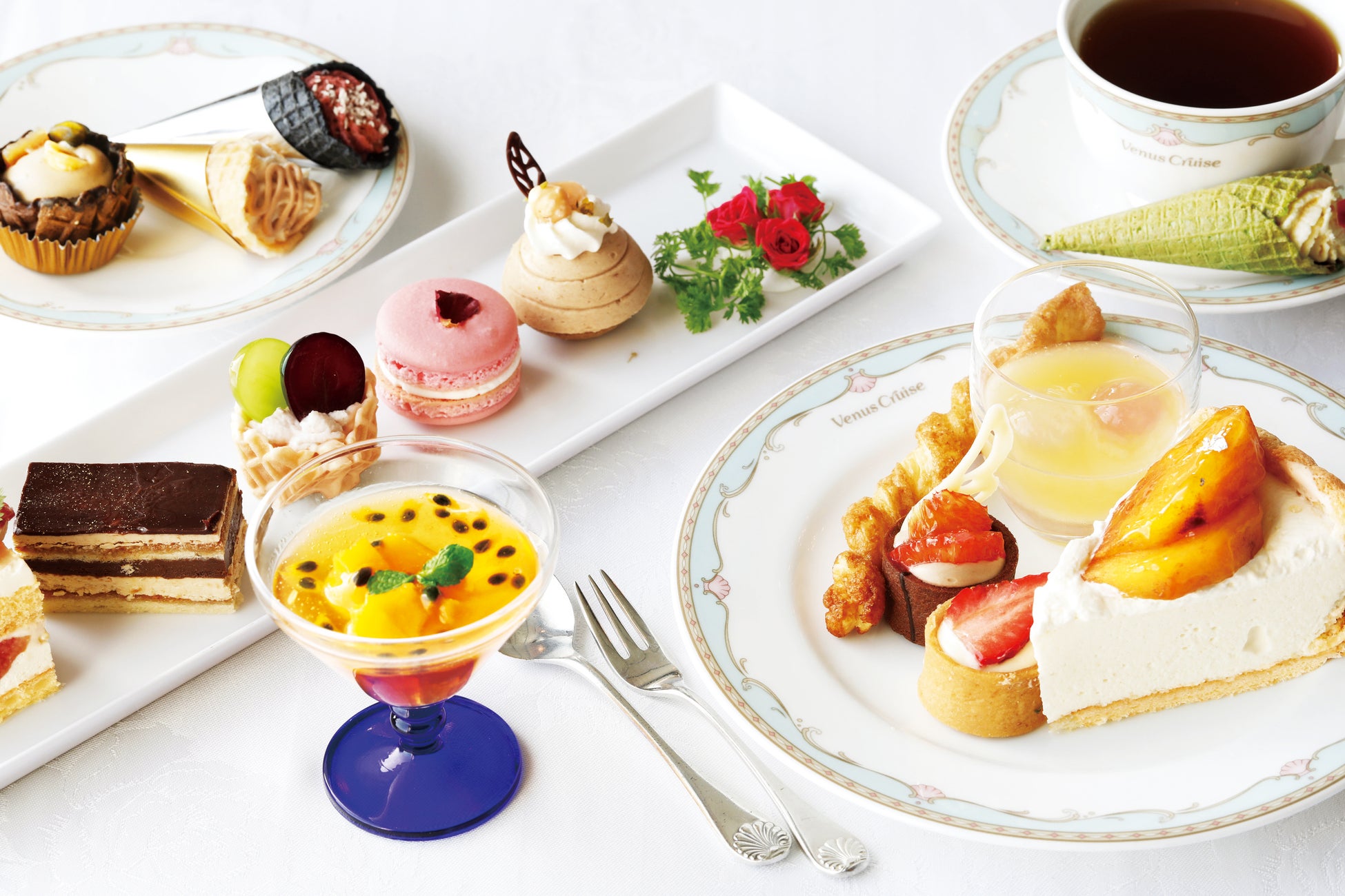 洋上のパティシエ(ケーキ職人)がつくる季節の果実をふんだんに使った「スイーツオンウェーブ」を珈琲や紅茶とともに海を眺めながらのゆったりとした至福のひとときをお楽しみください!