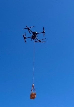 陸上輸送が困難な地域を想定した孤立集落への物資輸送を検証するため、ドローンによる物資輸送訓練を実施します。使用するドローンは40kg程度の物資を輸送できます。