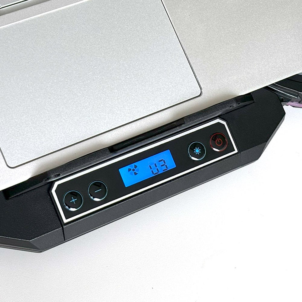本体下部には現在のファン風量と動作パターンが確認できる液晶ディスプレイを搭載。ファン速度は6段階で調整でき、本体手前と本体奥のファンで動作パターンを切り替えられるため、お使いのノートPCの排気口に合わせた動作が可能です。