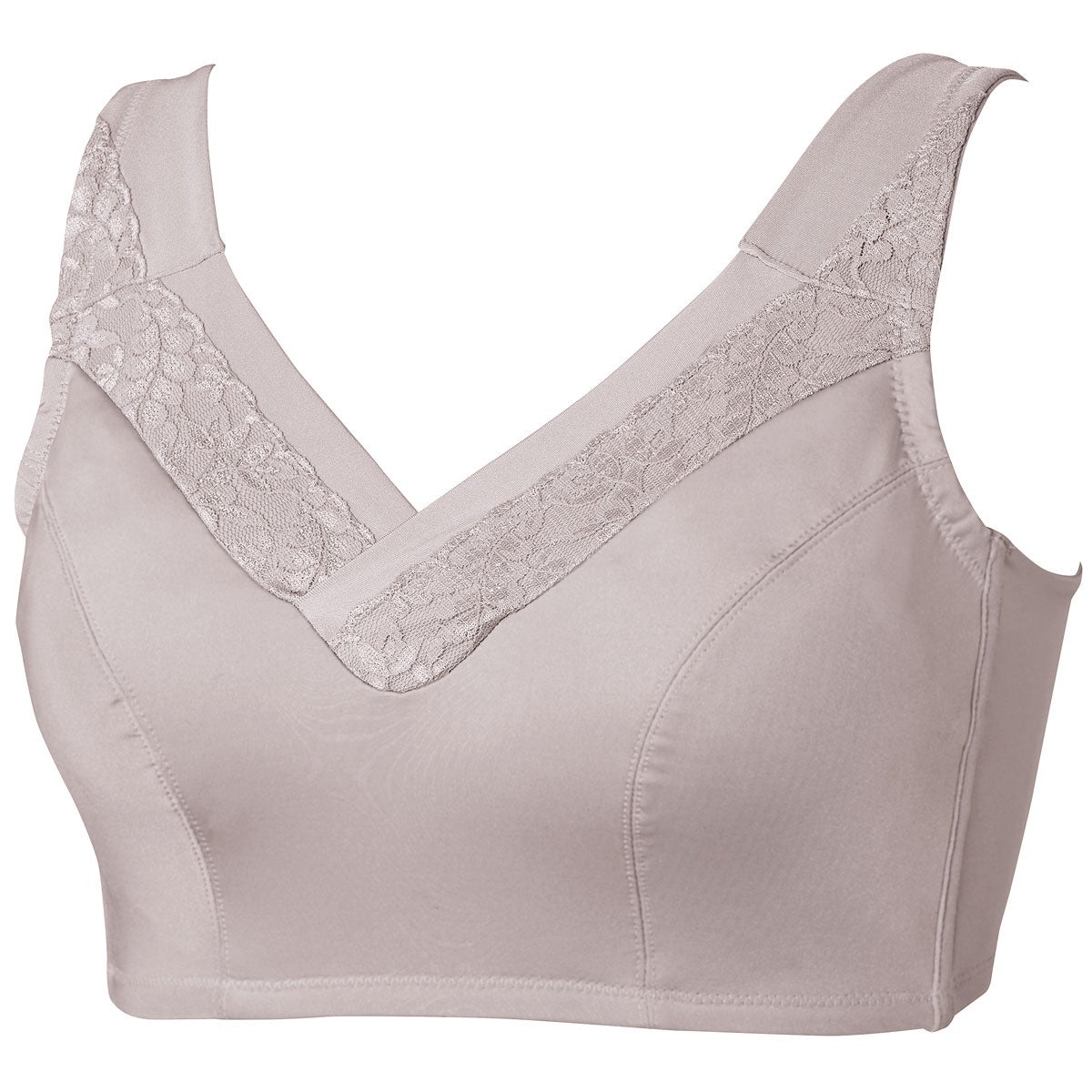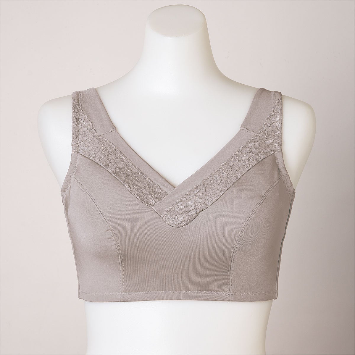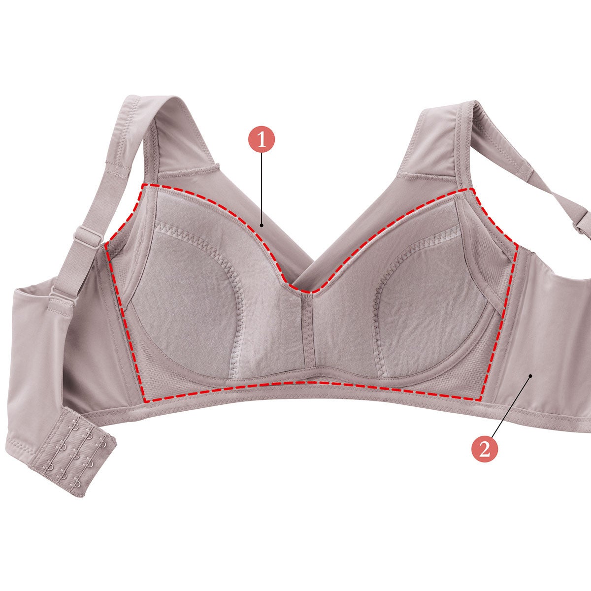 カップ部分全面に伸びにくい生地を採用し、バスト全体をおさえます。