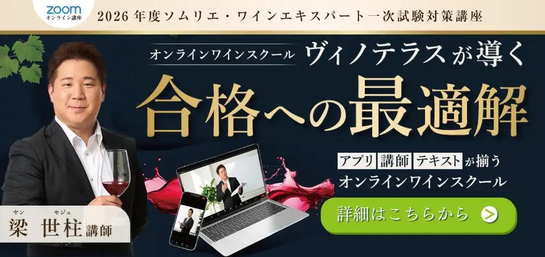 ヴィノテラスのソムリエ・ワインエキスパート試験対策講座では、梁講師の豊富な経験と最新の知識で受講生の皆様を最短で合格へと導きます。