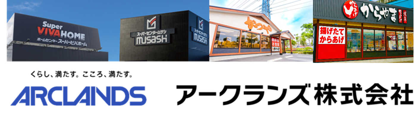 アークランズ株式会社は「くらし、満たす。こころ、満たす。」をスローガンに業界をリードする生活価値提供グループを目指し、ホームセンターの「ムサシ」、「ビバホーム」、とんかつ専門店「かつや」、からあげ定食専門店「からやま」などを運営し、「住」と「食」に関わる事業を展開します。独自の進化と変化を続ける事で専門性を極め、お客様の「もっとくらしを豊かにしたい」というおもいにお応えします。