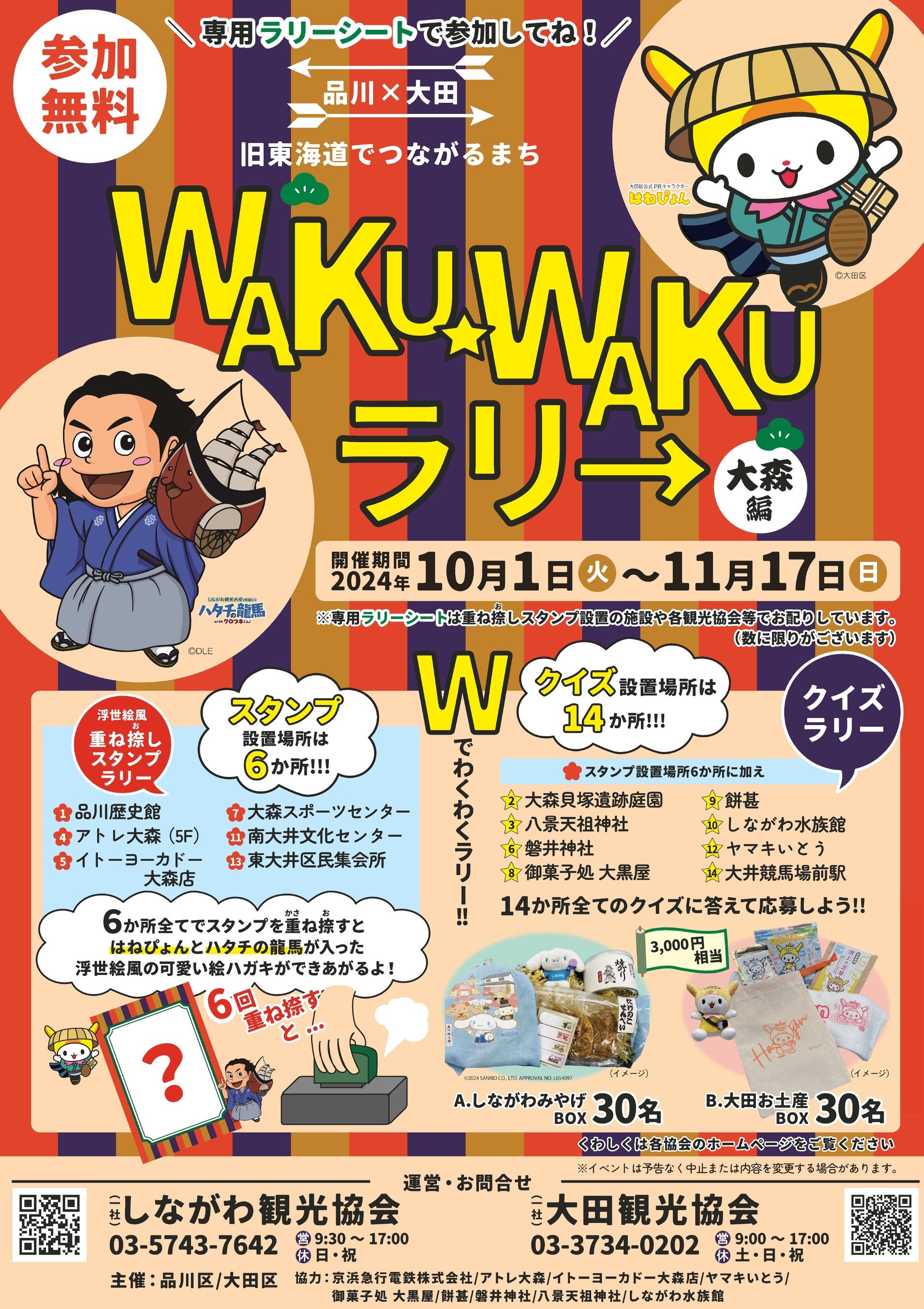 備考:専用のラリーシートは、重ね捺しスタンプ設置施設、しながわ観光協会、大田観光協会などで配布(数に限りがあります)
