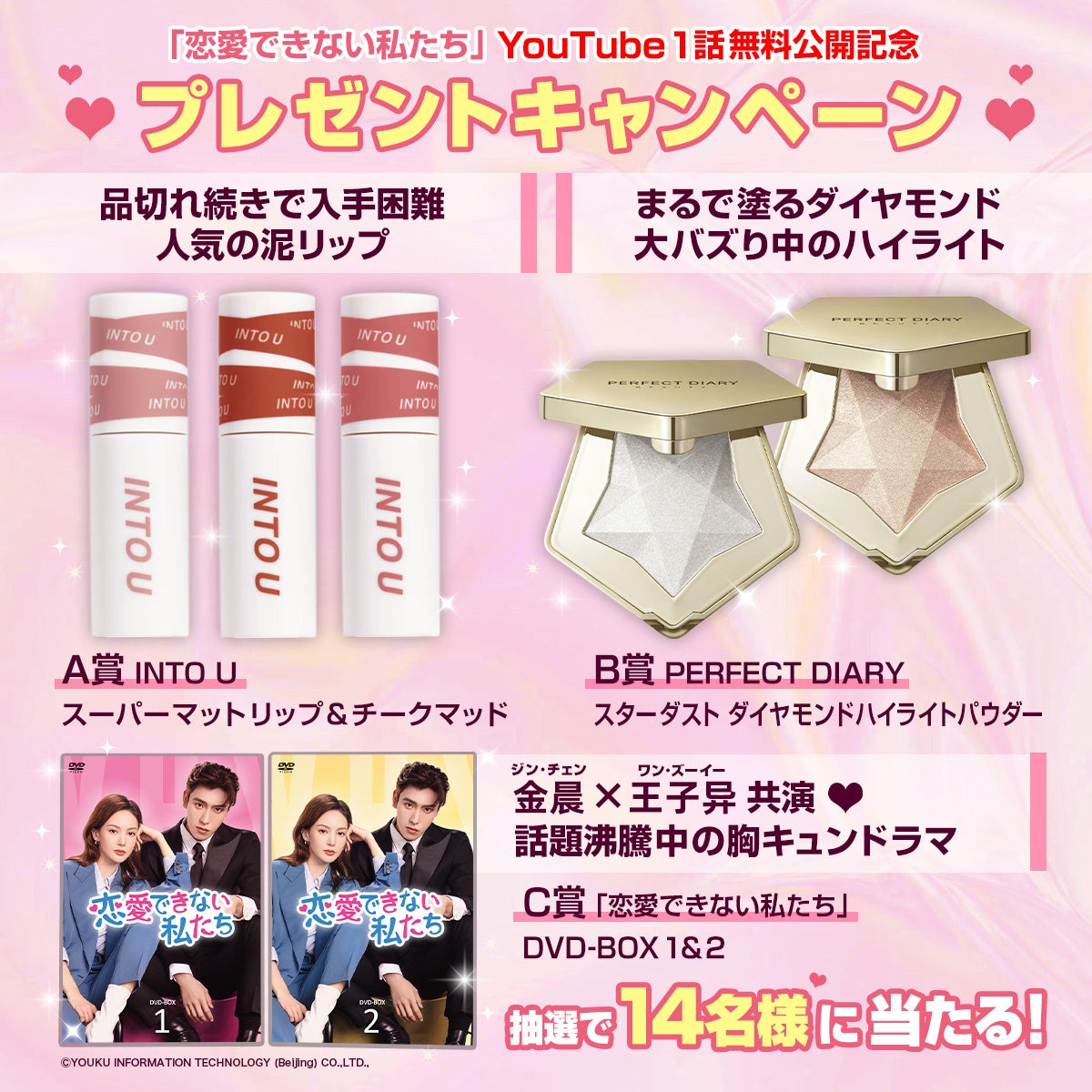 【期間限定】「恋愛できない私たち」YouTubeで1話特別無料配信がスタート!人気中国コスメやDVDほか豪華プレゼントが当たる公開記念キャンペーンも開催!