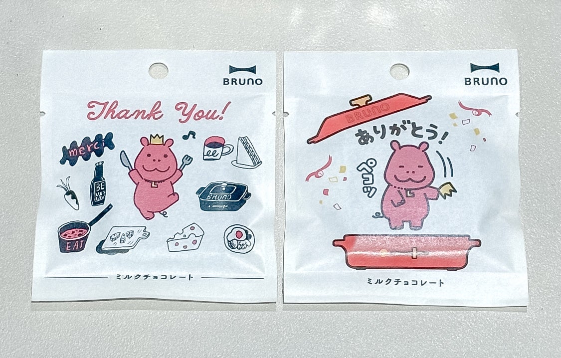 <グッズ>限定アクリルキーホルダー(3種)、BRUNO×ルクアーノ コラボチョコレート(2種)、オリジナルミニトートバッグの中から抽選で1点