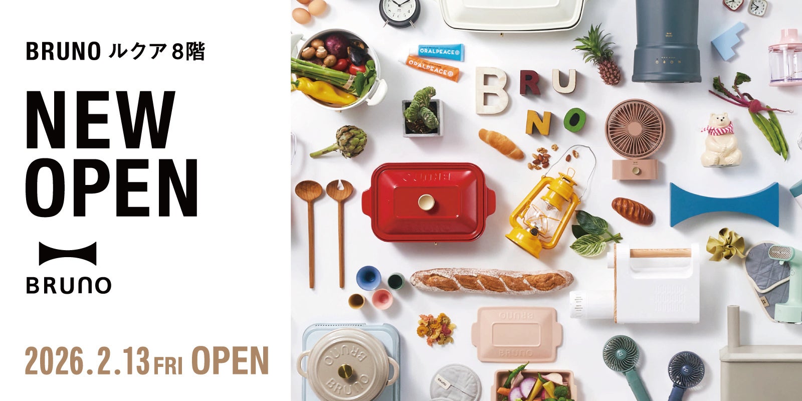 ライフスタイル商品の企画/開発/販売を行うBRUNO株式会社(本社:東京都新宿区、代表取締役社長:塩田徹)は、ライフスタイルブランド「BRUNO(ブルーノ)」の期間限定ショップを、ルクアに2026年2月13日(金)よりオープンいたします。