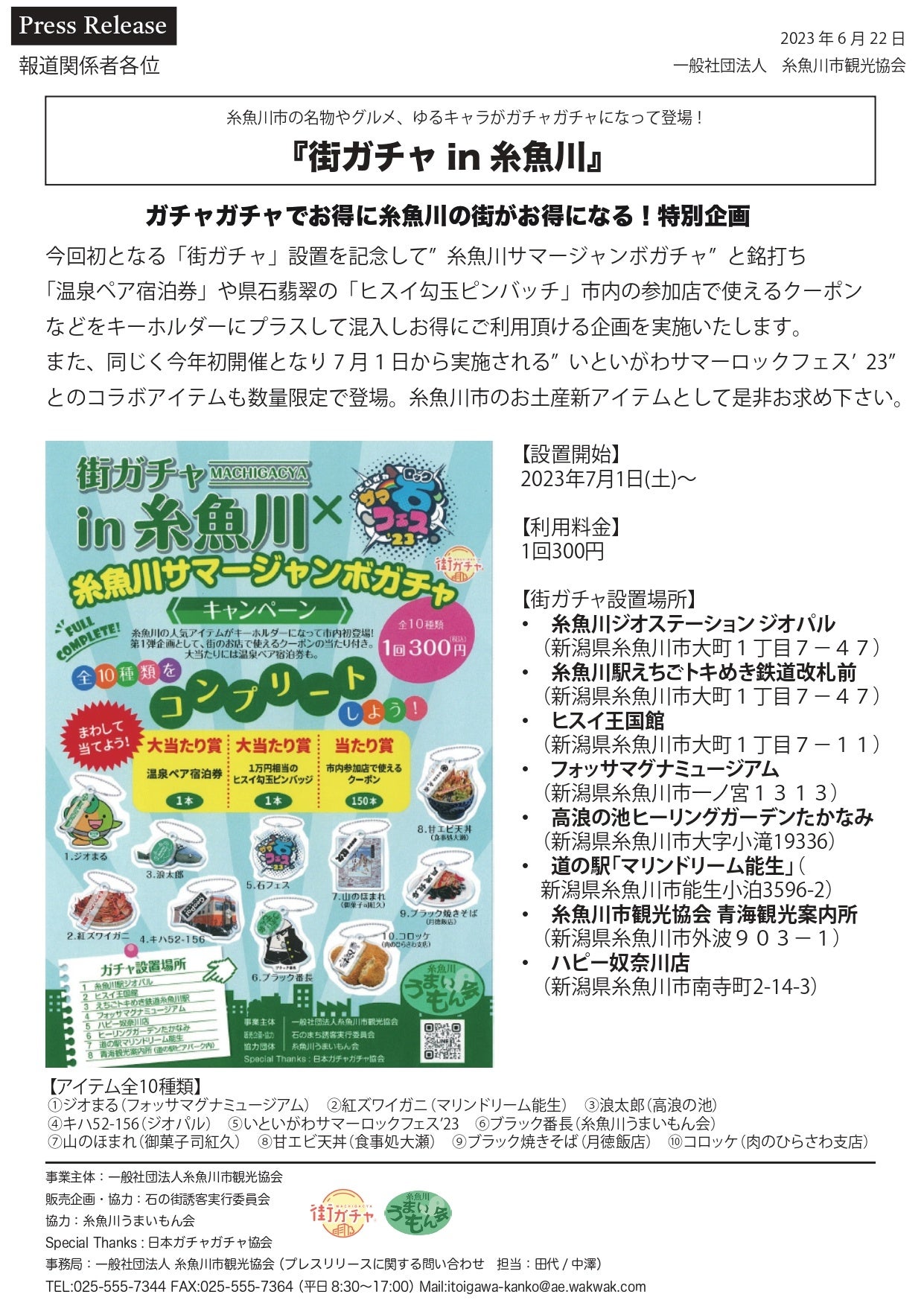 糸魚川市の名物やグルメ、ゆるキャラがガチャガチャになって登場!『街ガチャ in 糸魚川』を設置